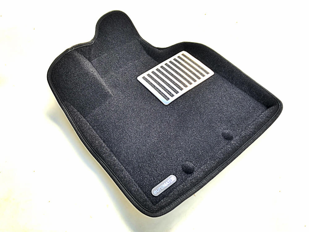 Материал среднего слоя не допускает проникновения влаги под коврик. Верхний слой изготавливается из велюра качества Люкс. Так же коврик оснащен металлическим подпятником, который еще более увеличивает срок эксплуатации.